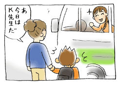 登園バスの当番がK先生だと、もう大変です。