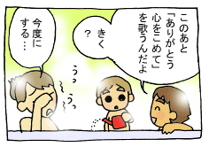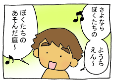 幼稚園で卒園式の練習をやっているらしい次男。