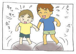 汗びっしょりで遊ぶ二人。