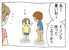 手渡した麦茶を美味しそうに飲んでいました。