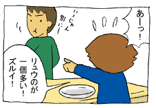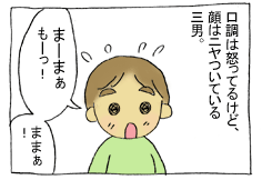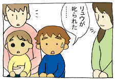 2. 「うるさーい!!」と怒った長男が次男をどつく。