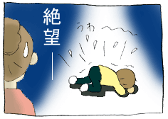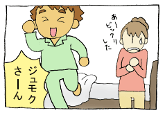 こんな感じで飛び起きる次男。