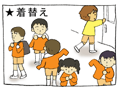 先生「給食を片付けたら、うがいをして、着替えをして、
