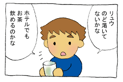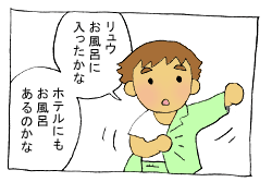 最初は「ホテルに泊まるの?いいなーリュウ~」と羨ましがったりしていましたが、